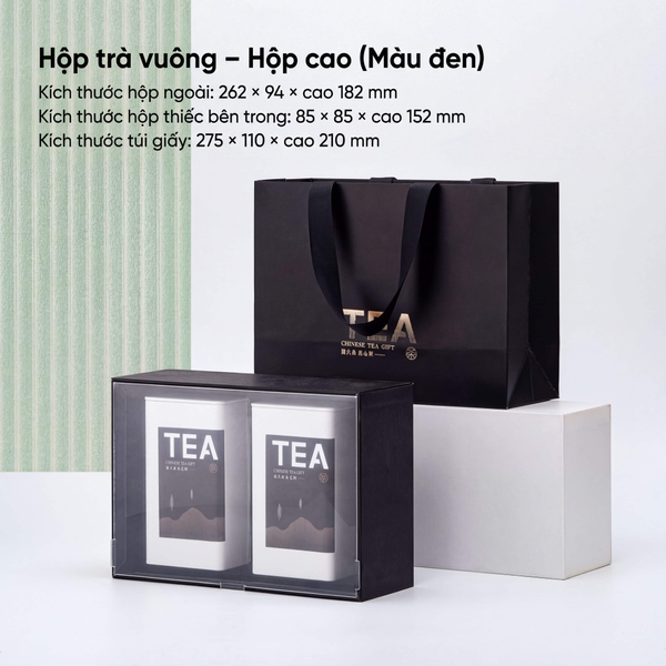 | Phân loại | Hộp ngoài (DxRxC) | Hộp thiếc trong (DxRxC) | Túi giấy (DxRxC) |