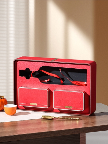 Bộ Hộp Trà Thiếc Rượu Vang Đỏ Kèm Túi Quà Sang Trọng