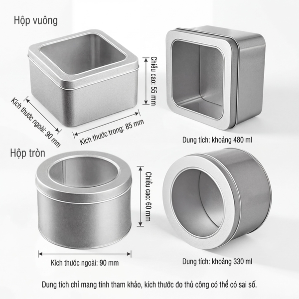 | Kích thước trong | Đường kính 86 × Cao 55 mm | 85 × 85 × Cao 52 mm |