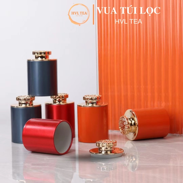 Lon trà thiếc nhỏ có nắp kim cương hoa mận kích thước 48x70mm - HVL TEA